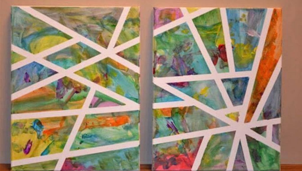 Before your child starts painting, place strips of tape in a fun pattern across the canvas or paper.