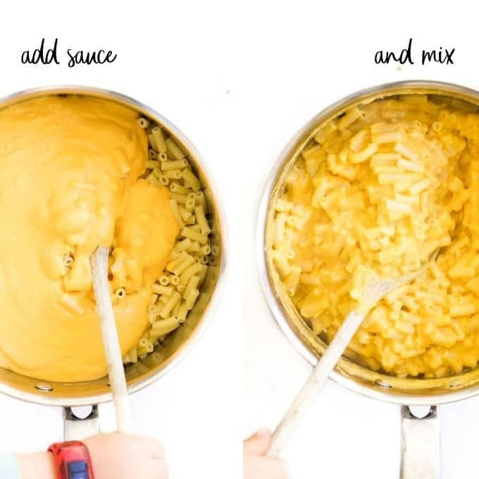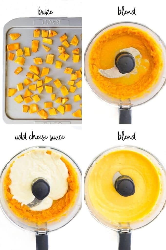 Blend your cooked squash and cheese sauce together until smooth, then mix it all through your cooked pasta.