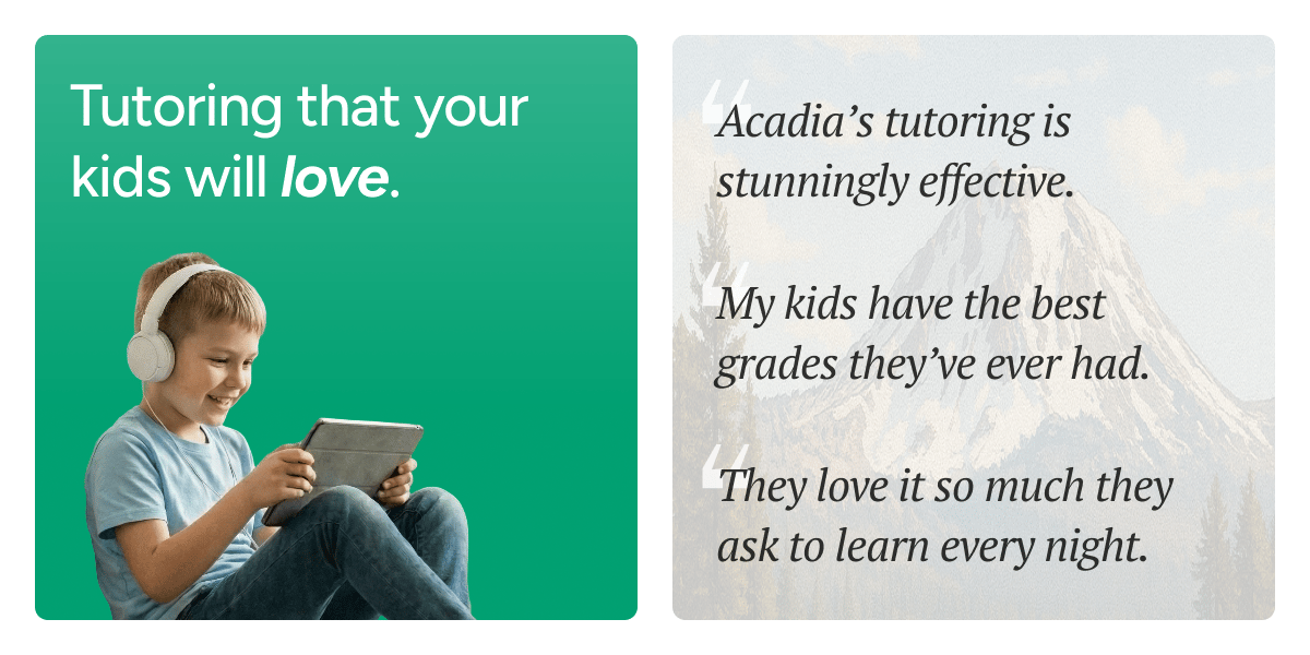Acadia Learning is trusted by 1,000+ homeschool families to step in when lessons get tricky, energy runs low, or you just need a break. From tough subjects to keeping learning engaging, Acadia gives you support without giving up control.