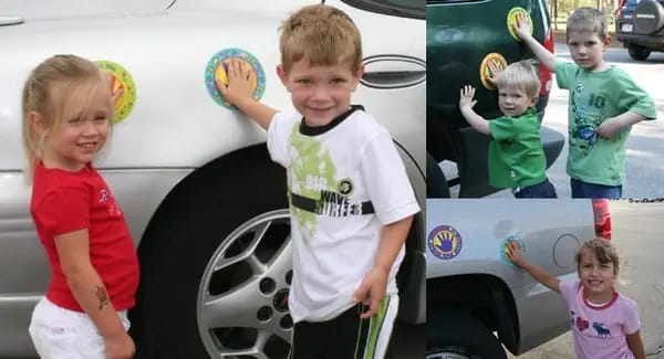 To keep an older child safe while you're busy loading or unloading the car, use a "safety spot" sticker.